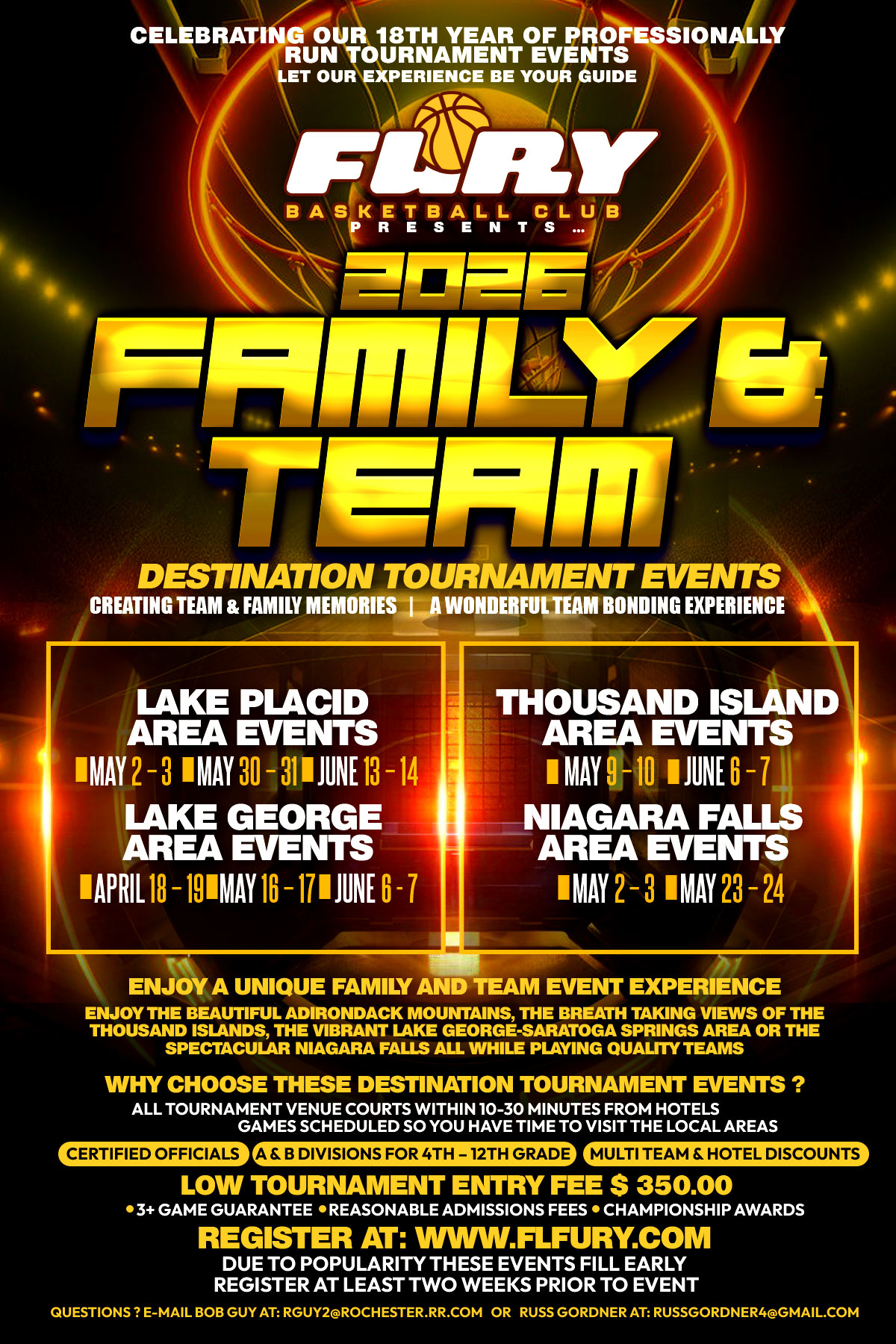These are tournaments hosted by Fury Basketball Club. If you are a Fury Coach, you do not register for all of these events.